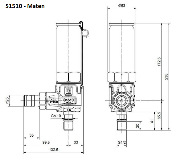 • Als de ingestelde werkdruk 20% overschreden, de klep opent en het medium ontsnapt in de open lucht.